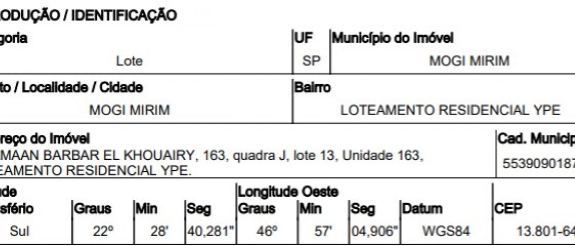 RUA SAMAAN BARBAR EL KHOUAIRY,N. 163 QD J, LT 13, LOTEAMENTO RESIDENCIAL YPE - CEP: 13801-642, MOGI MIRIM - SAO PAULO nº 163
